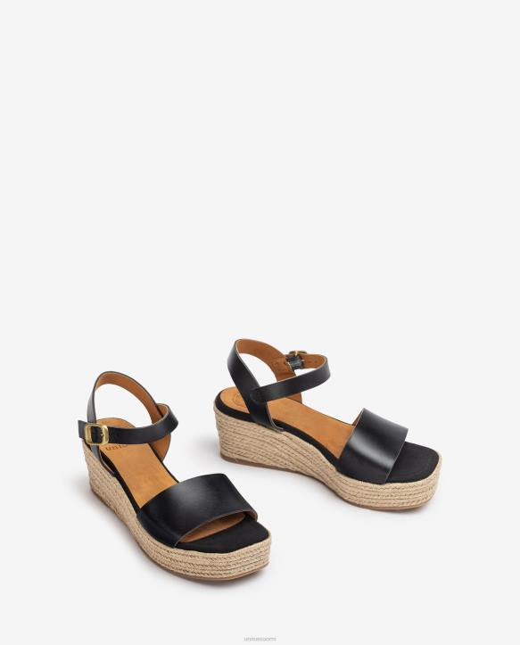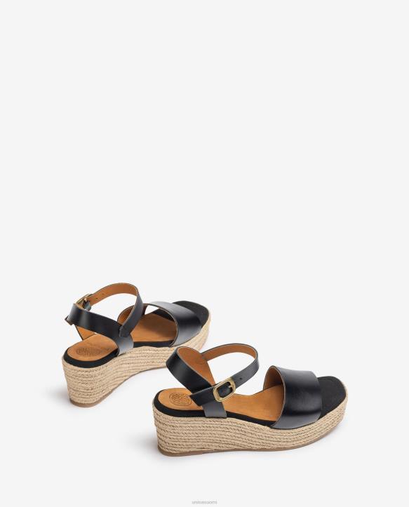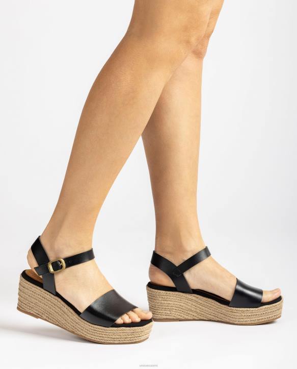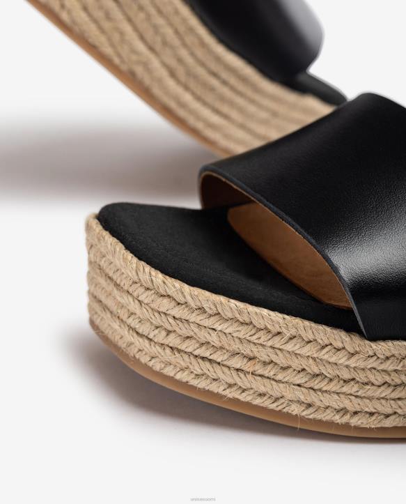naiset Unisa juuttiblokkisandaali mustaT08H330