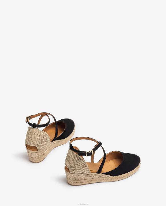 d'orsayn nilkkaremmi pyöreävarvasespadrille, valmistettu mokkasta. raffia kantapää ja ristikkäiset olkaimet jalkaterässä, joita voidaan säätää metallisoljella. 3 cm korkea kiila päällystetty luonnollisella värillä juutilla ja 1 cm alusta. kevyempi ja joustavampi eva-pohja kuin koskaan ennen superlight-tekniikan ansiosta. Välimeren olemus unisa-kengissä.