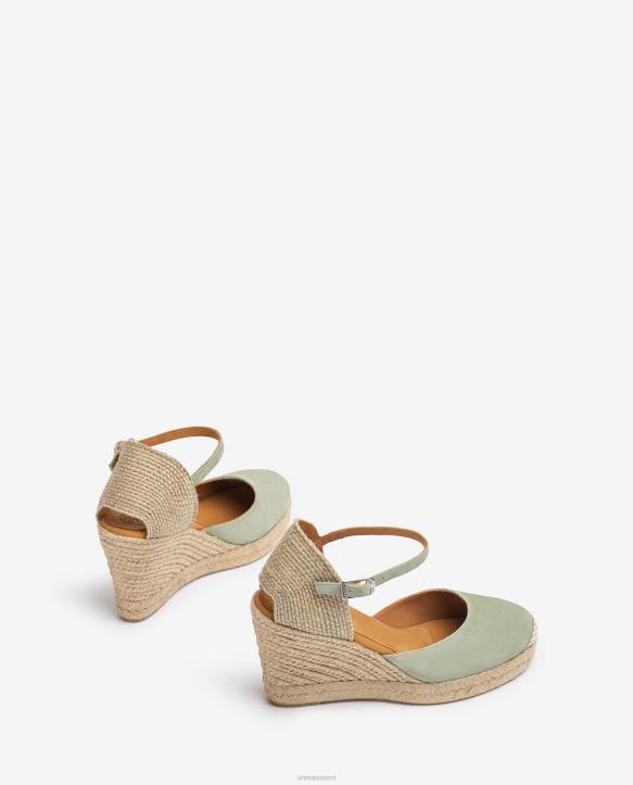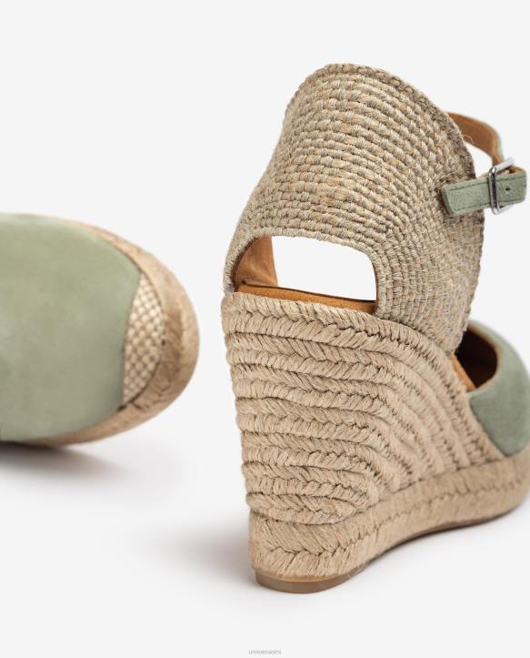 naiset Unisa mokkanahkainen espadrilli raffia-korolla vihreäT08H484
