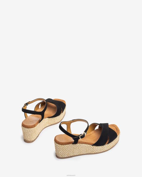 naiset Unisa sandaali, jossa raffia-korko mustaT08H163