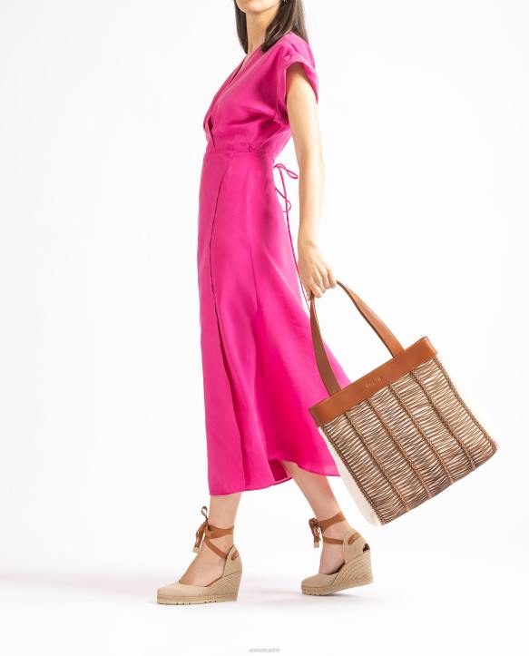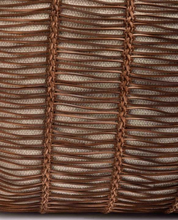 iso käsilaukku luonnonpuuvillakankaasta ja ohuista kontrastivärisistä nahkarannekkeista. nahkaiset olkaimet. magneettinen neppari ja sisällä vetoketjullinen tasku. koko: 34cm x 37cm x 15cm