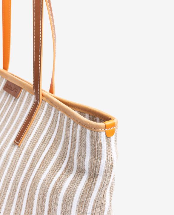 suuri ostoskassi, joka on valmistettu jarapasta. jarapan pääasia on, että se on kierrätyskangasta, joten uusien kankaiden valmistukseen tehdään suurin osa kaikesta, mitä ei voi käyttää. nahkaiset olkaimet ja magneettinen nappikiinnitys. sisällä vetoketjullinen tasku. koko: 31cm x 42cm x 14cm