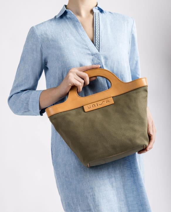 naiset Unisa käsilaukku, jossa jäykkä nahkakahva vihreäT08H1096