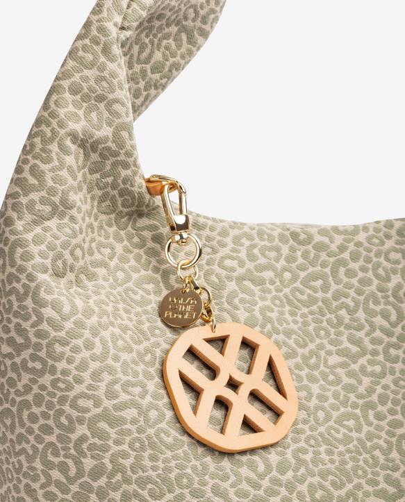 Isokokoinen hobo-laukku, joka on valmistettu kierrätetystä painetusta kankaasta. magneettinen nepparikiinnitys ja logoreunus kahvassa. 31 cm x 35 cm x 17 cm