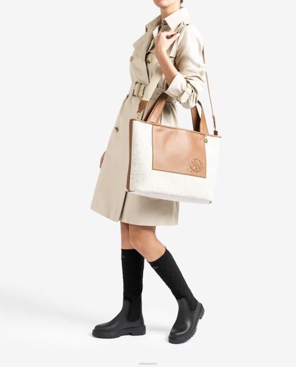 ostoskassi, joka on valmistettu 100 % kierrätetystä ekovillakankaasta jätemuovipulloista. magneettikiinnitys ja ulkotasku monogrammilla. irrotettava olkahihna sisällä. unisa rakastaa planeettaa. 31 cm x 46 cm x 14 cm