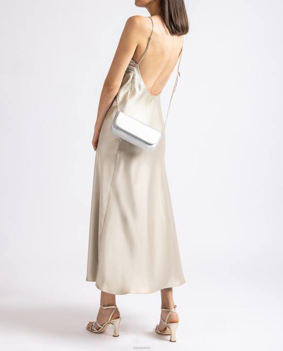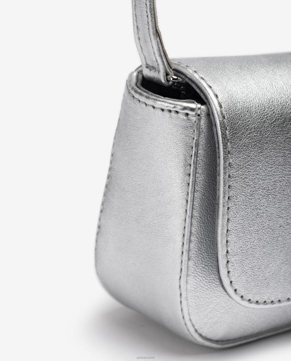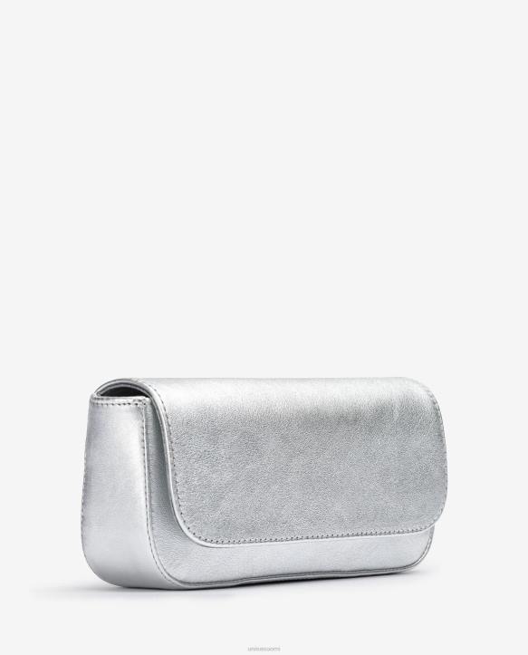 naiset Unisa metallinen nahkainen juhlakäsilaukku hopeaT08H1212