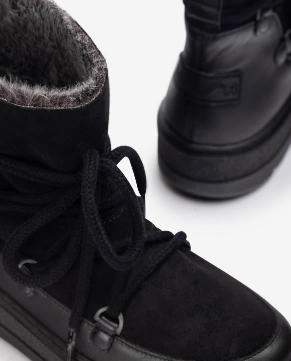 apres ski -nilkkurit, jotka on valmistettu mokkanahkakankaasta ja nauhat. sisäpuolella yhteensopiva tekoturkisvuori. kevyt, joustava ja luistamaton kuminen superpehmeä pohja ja irrotettava ja ergonominen respilon-sisävuorauksella valmistettu pohjallinen. he ovat parhaita liittolaisiasi kylmää vastaan!