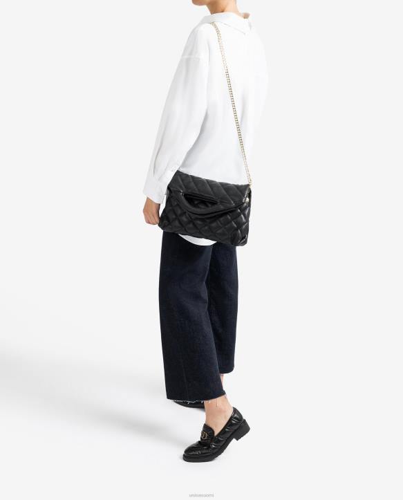 naiset Unisa tikattu laukku taitetulla läpällä mustaT08H1172