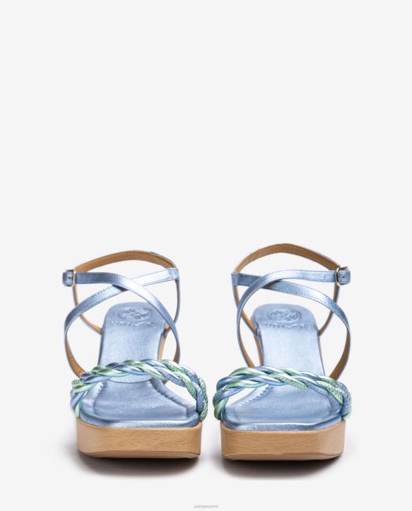 naiset Unisa metallinen nahkainen kiila sandaali sininenT08H245