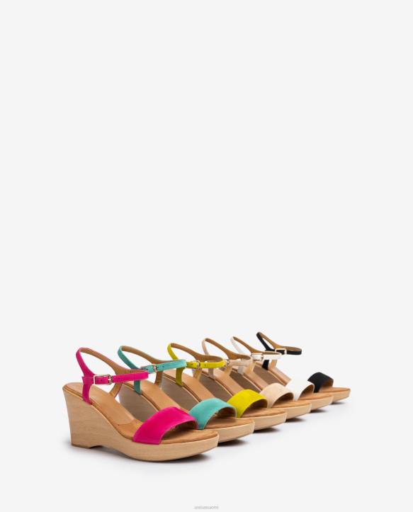 Mohkanahkasandaali eri väreissä, olkapäässä hihna, jota voidaan säätää metallisoljella. pu puuefekti 8,5 cm kantapäällä ja 2 cm alustalla. unisa-esanssi puhtaassa muodossaan.
