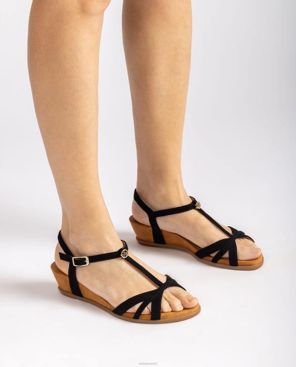 naiset Unisa nauhallinen sandaali kiilalla mustaT08H76