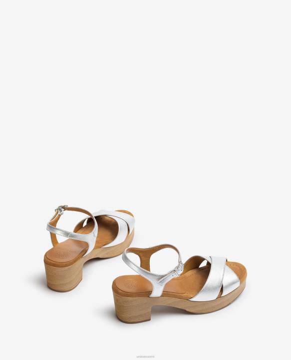 naiset Unisa keskikorkoinen nahkasandaali hopeaT08H420