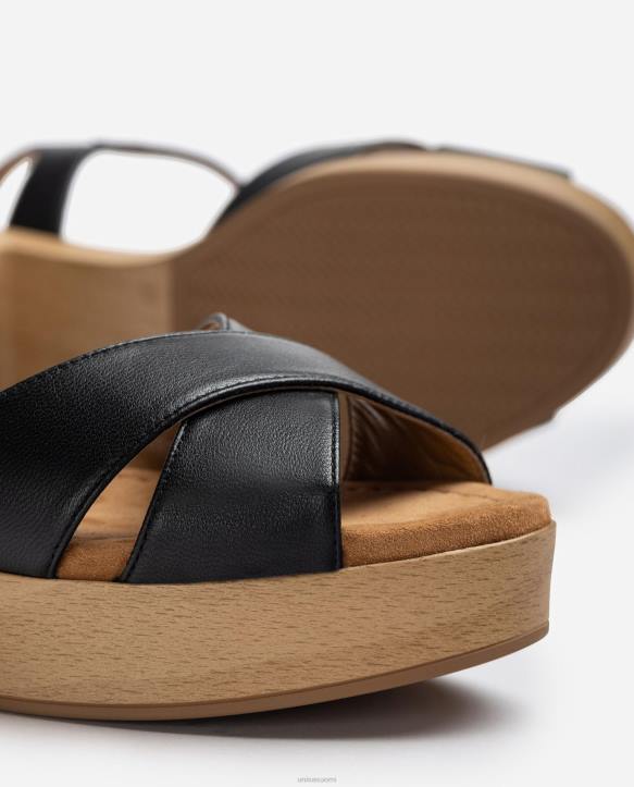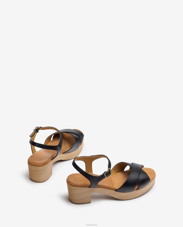 naiset Unisa keskikorkoinen nahkasandaali mustaT08H404