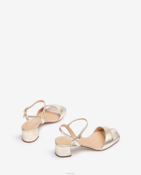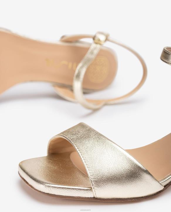 sandaali metallinahasta. tavallinen nelikulmainen vamp ja nilkkahihna, jota voidaan säätää soljella. mukava 4,5 cm kantapää ja nahkapohja.