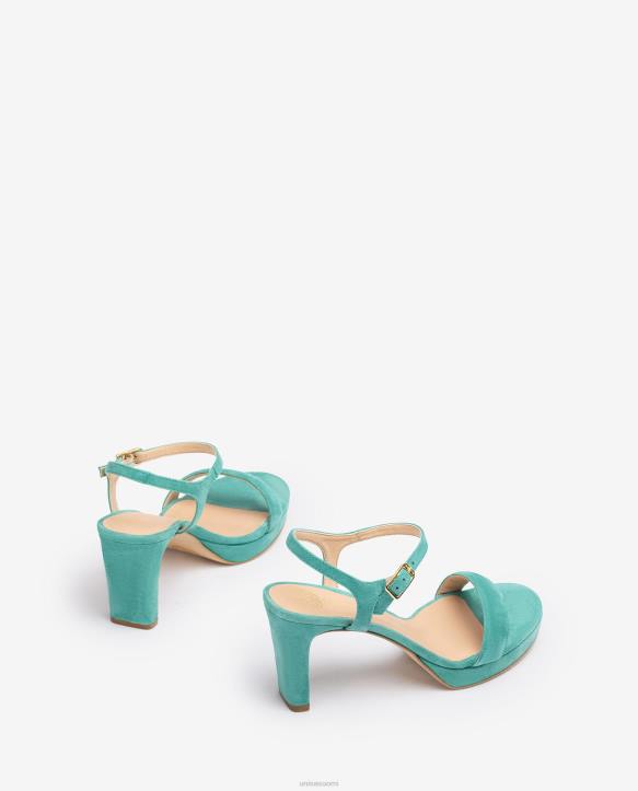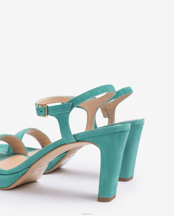 Mohasta valmistettu pyöreäkärkinen sandaali. 8cm kantapää ja 1cm alusta päällystetty yhteensopivalla mokkanahalla. nilkkahihna, jota voidaan säätää metallisoljella ja kevyellä, luistamattomalla kumipohjalla. ylellisiä käsintehtyjä viimeistelyjä.