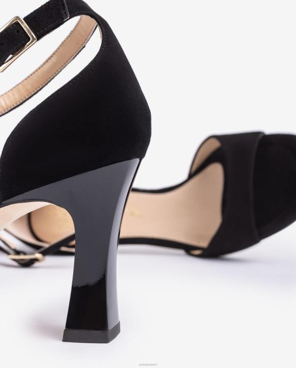 naiset Unisa mokkanahka d'orsay nilkkahihna sandaalit mustaT08H260