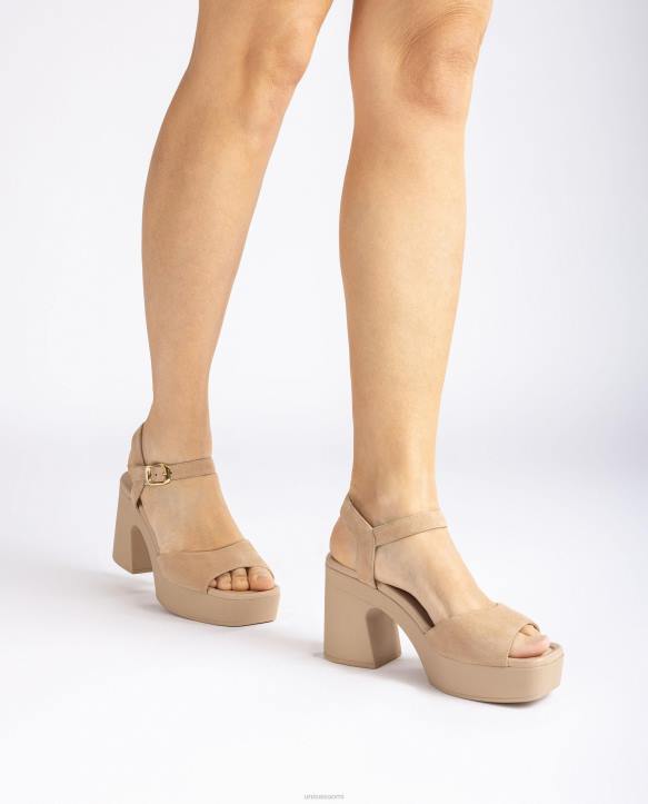 naiset Unisa sandaali, jossa on yhteensopiva lohkokorko beigeT08H86