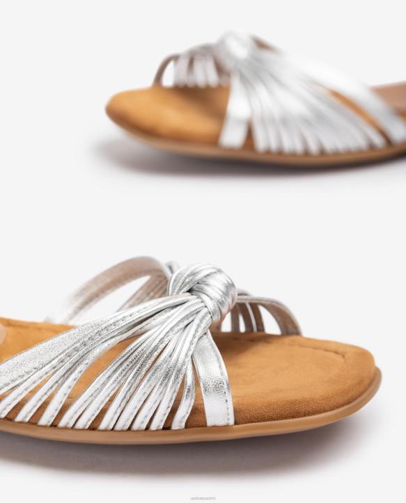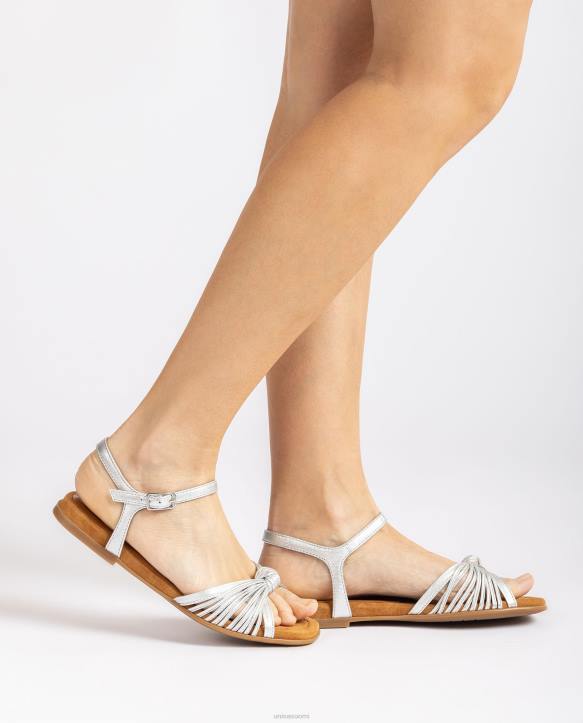 naiset Unisa litteä metalliviimeistely monihihnainen sandaali hopeaT08H329