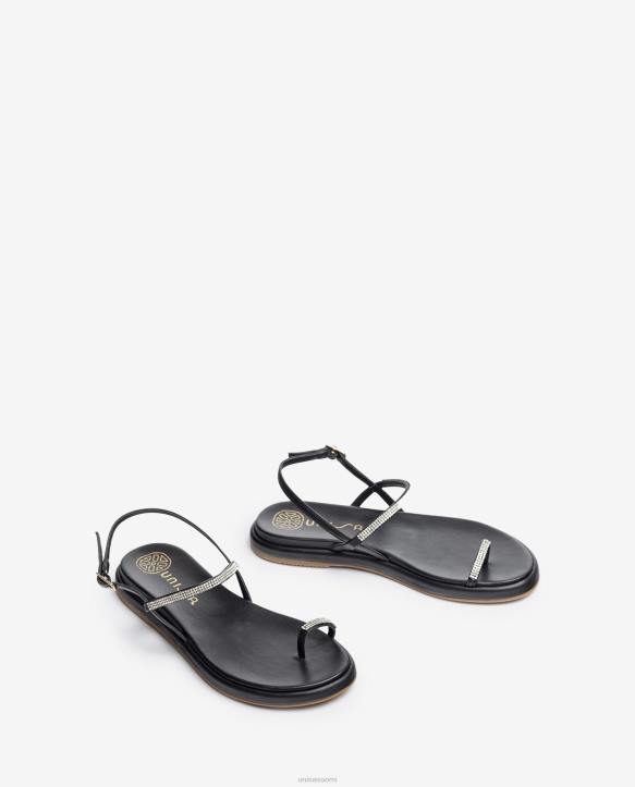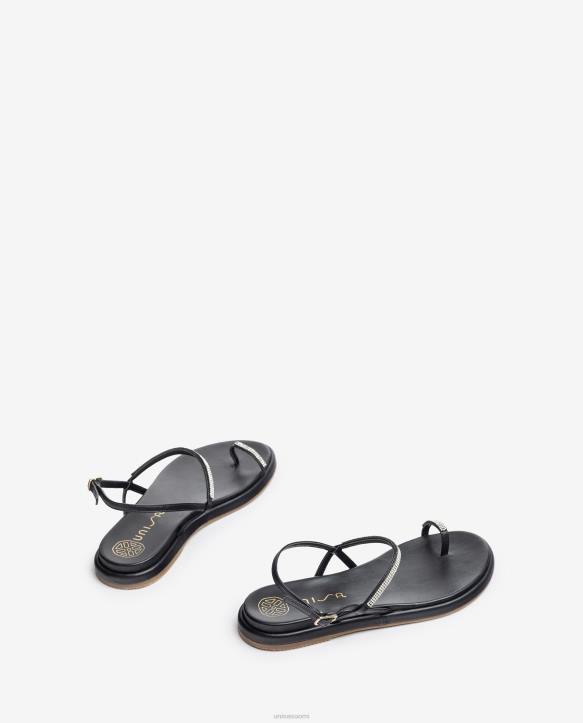 naiset Unisa litteä nahkainen varvassandaali mustaT08H1312