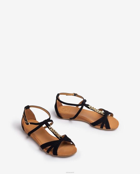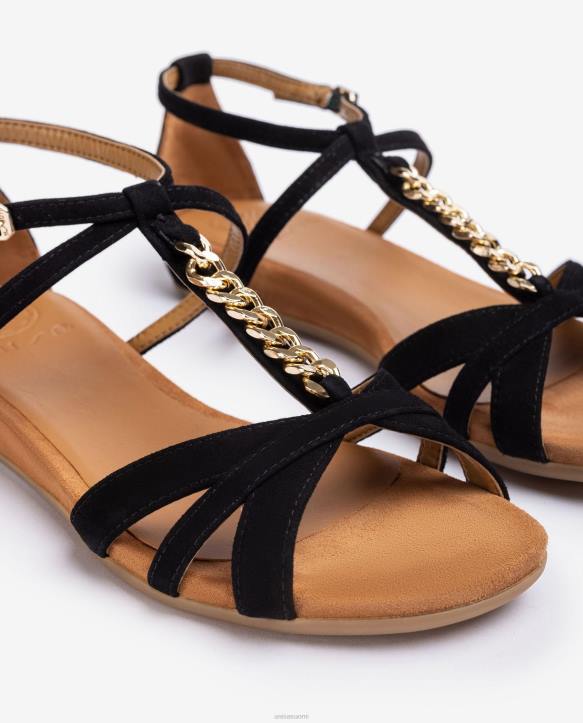 naiset Unisa litteä sandaali ketjulla mustaT08H89