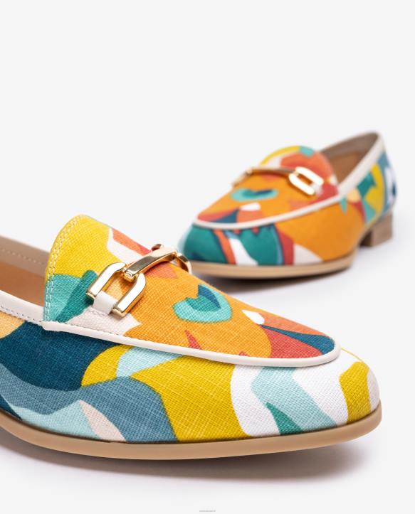 Pyöreäkärkinen litteä loafer monivärisestä kankaasta. pehmeä kangasvuori mukavuuttasi varten. metallinen ura leikattu verhoilu edessä. kevyt, joustava, luistamaton, kumipohja. nyt unisan dalcyt ovat täällä, yksi tämän uuden kauden must-haveista.
