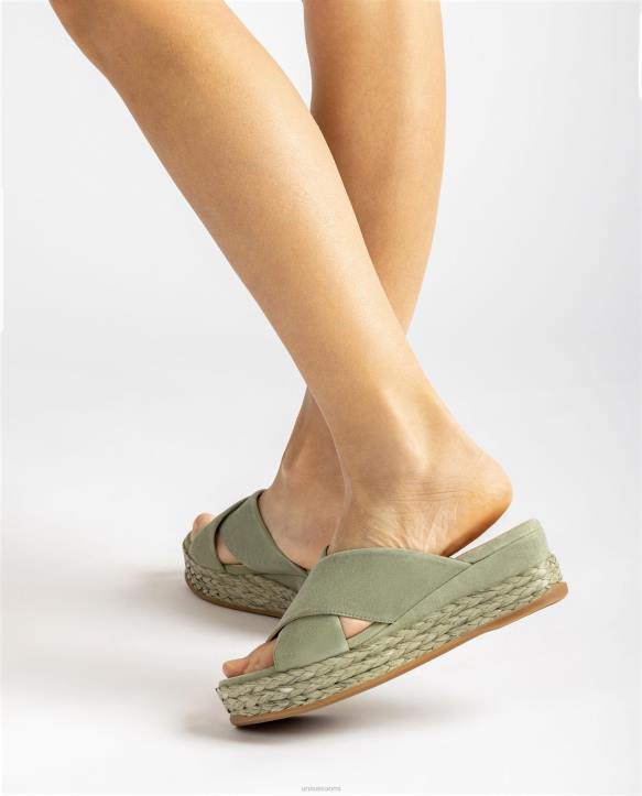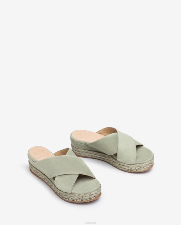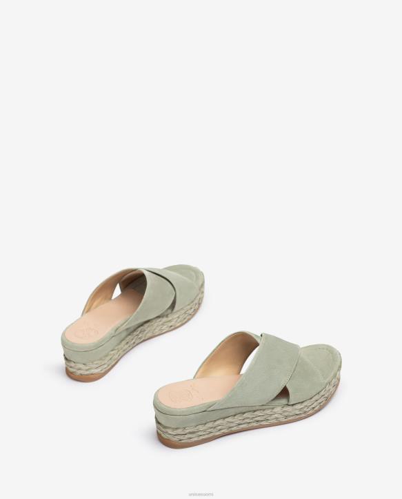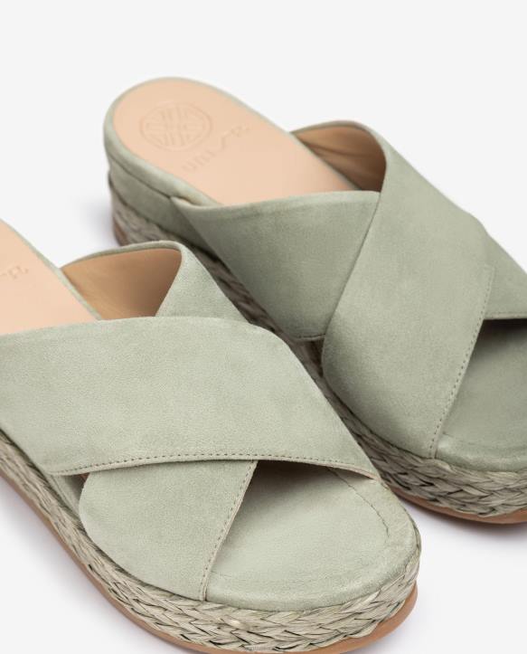 naiset Unisa mokkanahkasandaalit, joissa ristikkäiset olkaimet vihreäT08H814