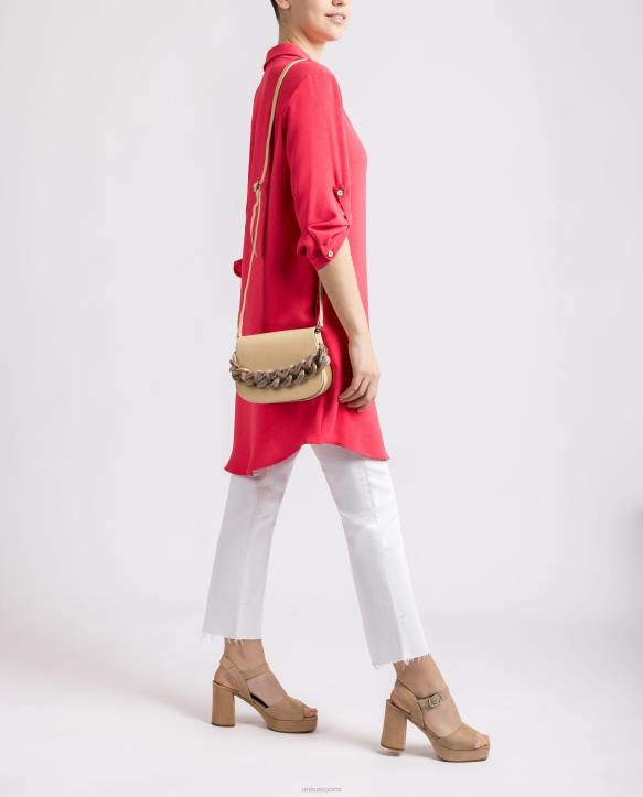pieni nahkainen käsilaukku. magneettisuljettava lokero. käsihihna isolla ketjulla ja crossbody-nahkaisella olkahihnalla. viimeistele ulkonäkösi tällä unisa-laukulla.