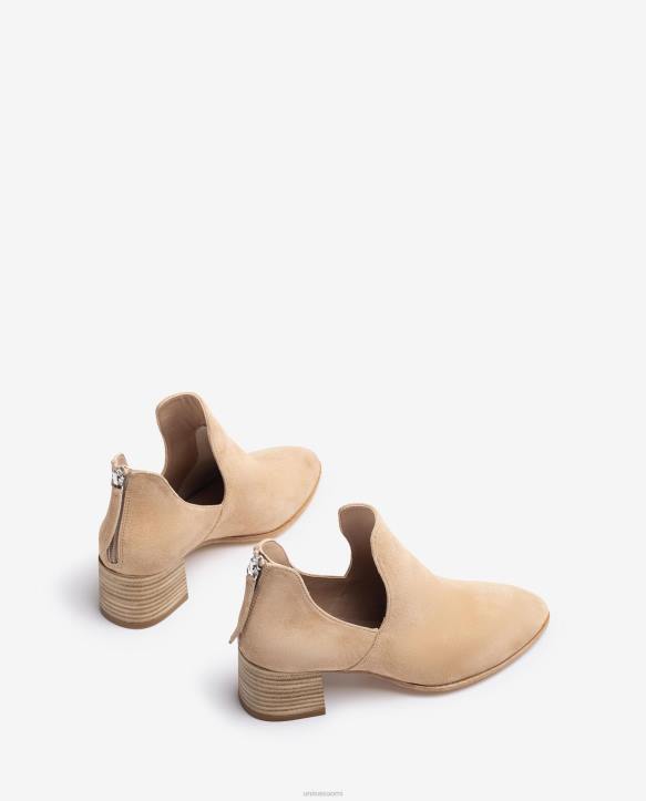 nilkkurit mokkanahkaa. vetoketju selässä mukavuuden takaamiseksi ja 5 cm:n puuvaikutteinen kantapää. kevyt, joustava ja luistamaton nahkapohja. nämä nilkkurit sopivat täydellisesti valmistautumaan kesäkauteen 2023.