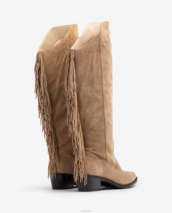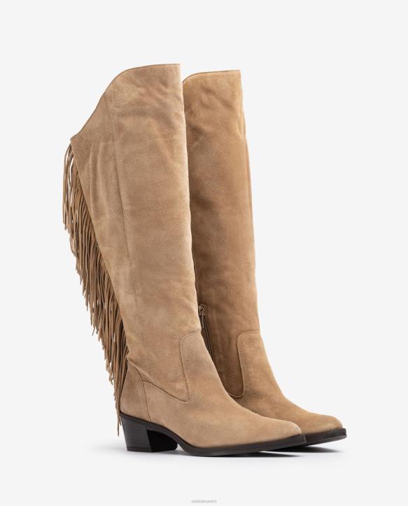 mokkanahkainen cowboy-tyylinen saapas, jossa tupsut jalan takana. 5 cm korkea kantapää ja kevyt, joustava ja liukumaton pohja. trendi, joka on löytänyt paikkansa uudessa unisa-kokoelmassa.