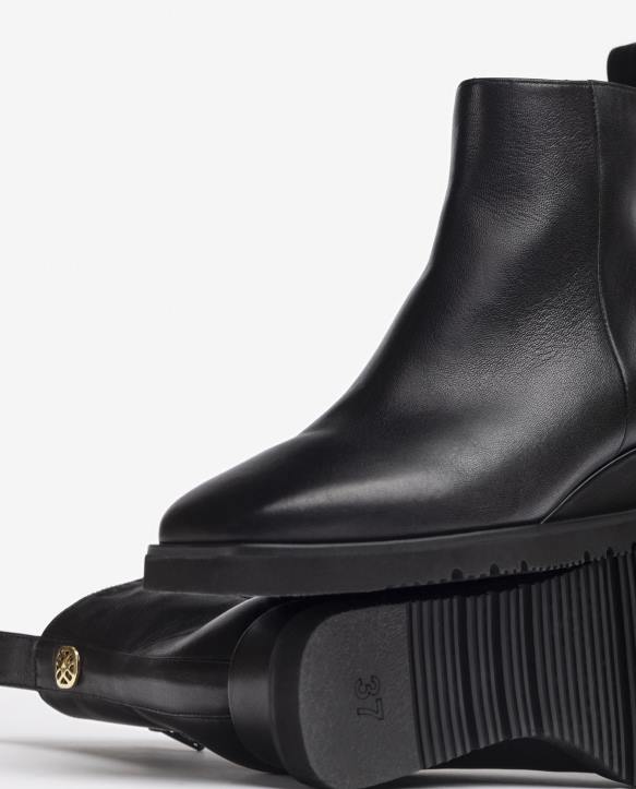 nahkaiset nilkkurit, joissa vetoketju sisäpuolella. metallinen monogrammireunus takana. yhteensopiva 4,5 cm kiila ja 1,5 cm korkea alusta. erittäin kevyt, erittäin kevyt, joustava ja mukava pohja. kaunis ja mukava koko päivän!