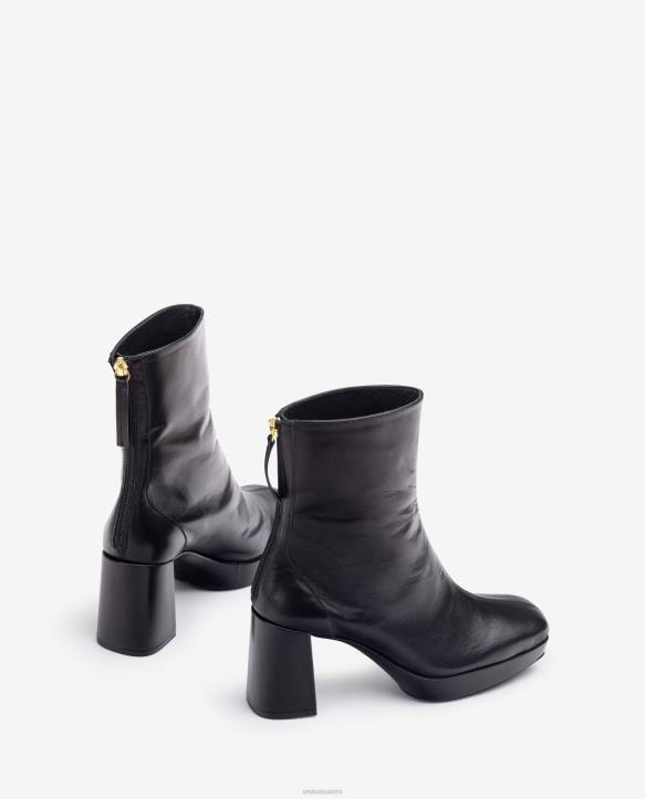 nahasta valmistettu neliökärkinen nilkkurit. vetoketju takana ja keskisauma edessä. 2,5 cm alusta ja 8 cm kantapää. kevyt, joustava, liukumaton kumipohja. olennainen malli unisa-naiselle.