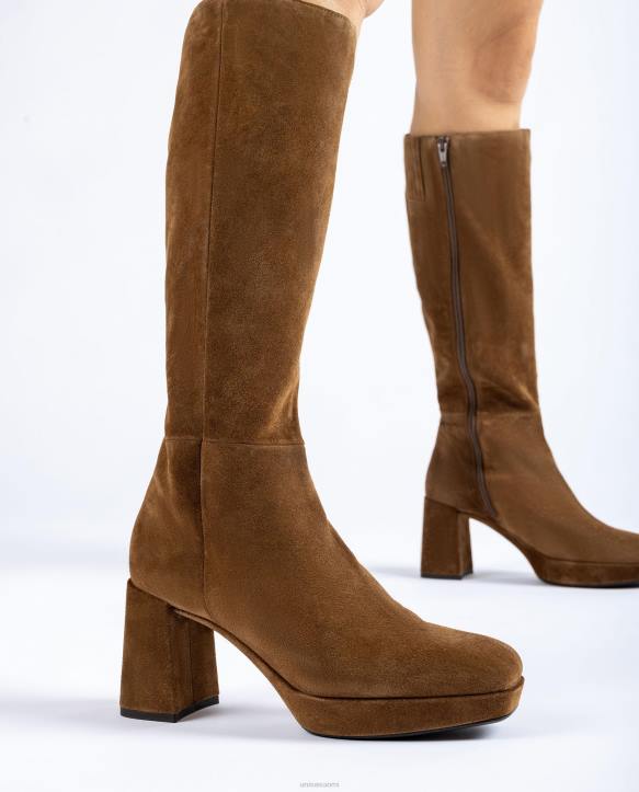 Neliömäinen kenkä, jossa on leveä neljakko, valmistettu mokkanahkasta. vetoketju sisäpuolella, 2,5 cm alusta ja 8 cm kantapää. kevyt, joustava, liukumaton kumipohja. olennainen malli unisa-naiselle.