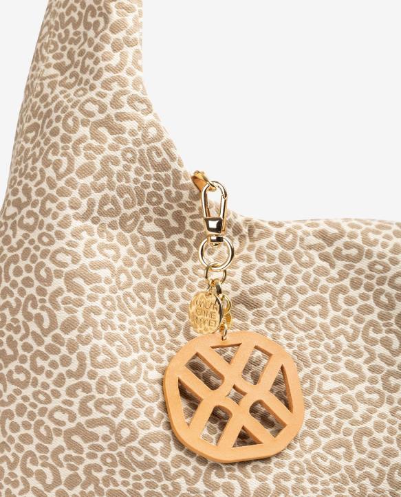 Isokokoinen hobo-laukku, joka on valmistettu kierrätetystä painetusta kankaasta. magneettinen nepparikiinnitys ja logoreunus kahvassa. 31 cm x 35 cm x 17 cm